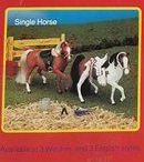 There were six basic stallions, all in the "classic" pose - walking with the right front raised, and head turned in slightly. They came with a dark blue brush, and plastic foodbin. These six stallions were cast from a single colour of plastic and had only basic markings - socks, blazes; their bodies were not shaded with airbrushing like the later horses were.