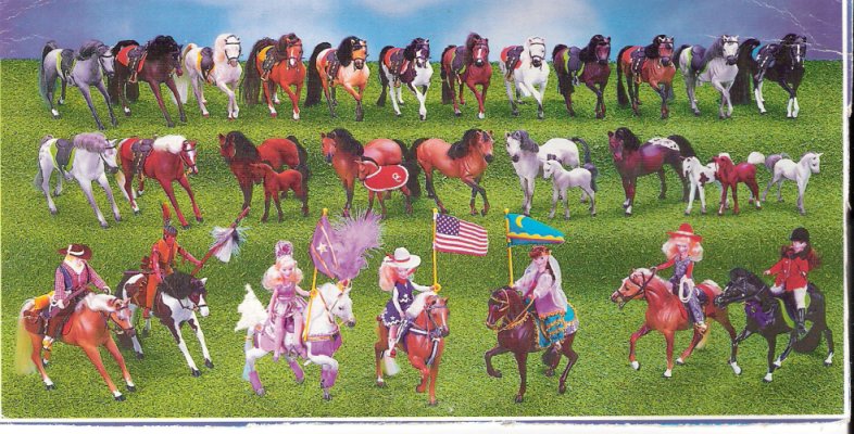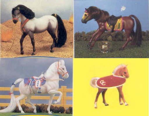 1990-1995 This was my favorite time of year, when the new sets started arriving. In 1990 through the late part of 199 5 a lot more varieties of horses starting being produced. The first time I saw any Grand Champion horses was back in 1990, when I visited Walmart on my 10th birthday. The first set I saw was the pinto mare and foal, the arabian quarterhorse mare and foal, and even the pinto stallion now known as Indian Chief. Sadly I only had enough money that day to purchase one of the horses; ,man was that a hard choice. The horses came in varities of stallions, mares and foals, foals, indians, sound horses, horse and rider, and even parade!