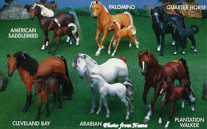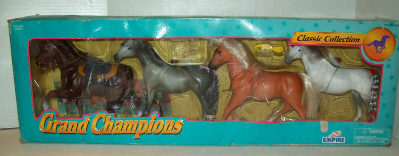 In 1996, the horses started appearing in different poses, different breeds, and new varieties of horses were created; minis, Sound N Action, and Feed N Nuzzle. The bio card than turned to a blue color instead of white. In this year the blue ribbon horse began to change off and on till Empire was bought out in the fall of 1999. This was a very interesting year for collectors.