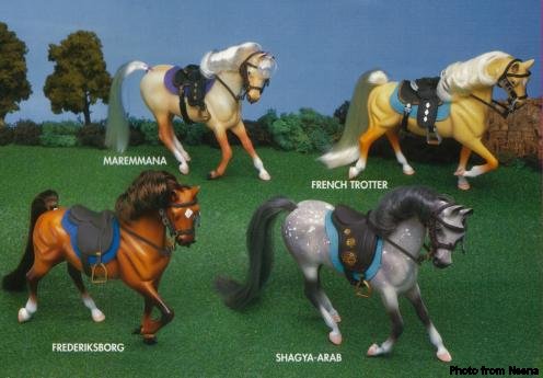 Some of the horses from the previous year, was released again this year, and the packaging changed, as well as the bio cards they had changed from white to blue.